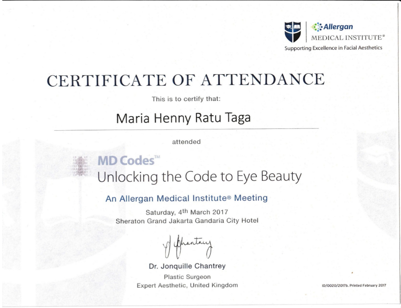 2017: Certificate Of Attendance MD Codes An Allergan Medical Insitute