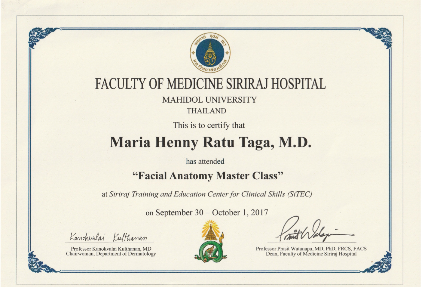 2017: Faculty Of Medicine, Siraraj Hospital. Facial Anatomy Master Class
