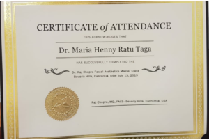 2019: Certificate of Attendance Dr. Raj Chopra Facial Aesthetic Master Class Beverly Hills, California USA July 13 ,2019